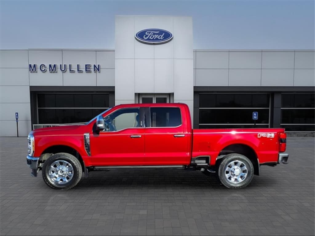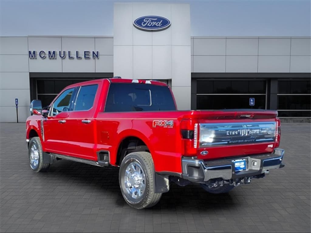 Our One Owner, Accident Free 2024 Ford F-250 King Ranch Crew Cab 4X4 with the FX4 Off-Road Pack earns its crown with stellar features and stylish Rapid Red Metallic good looks! Powered by a 7.3 Liter V8 serving up 430hp to a 10 Speed Automatic transmission. This fantastic Four Wheel Drive truck also impresses with our FX4 Pack, which adds which adds off-road shocks, hill descent control, robust skid plates, and a unique box decal to a Pro Power Onboard generator, built-in scales for payload/trailer-tongue weights, aggressive 20-inch King Ranch wheels, LED lighting, power running boards, PowerScope trailer mirrors, and a power tailgate. That's style with substance!