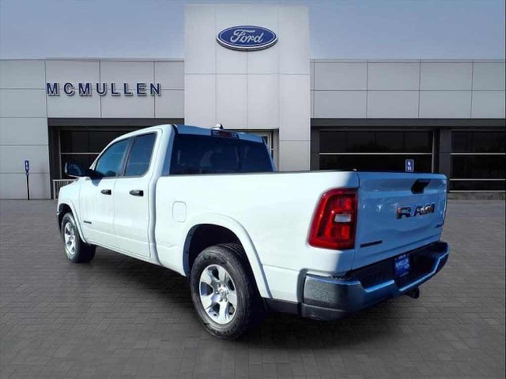 Tough and powerful, our Certified, One Owner, Accident Free 2025 RAM 1500 Big Horn Quad Cab 4X4 with the Level 1 Pack is built for bold challenges in Bright White! Motivated by a 3.6 Liter Pentastar V6 supplying 305hp to an 8 Speed Automatic transmission for robust real-world towing and hauling. Responsive handling inspires confidence in this Four Wheel Drive truck, which scores nearly 24mpg on the highway. Our RAM also rides with dynamic details like LED lighting, fog lamps, a Class IV receiver hitch, bold fender flares, alloy wheels, and a mighty RAM grille. Level 1 upgrades include multifunction mirrors and bed-mounted outlets powered by a 400W inverter.